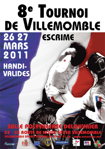 Date Samedi 26 Mars 2011 à 08:00 _MD_EXTCAL_LOCATION_DESCRIPTION : Le Tournoi de Villemomble, est une compétition d'escrime Open mixte Handicapés et Valides: - les handi A et B et les valides en fauteuil, - les mal-voyants debout Elle se déroule aux 4 armes : fleuret et épée – hommes et femmes. Elle est dotée de plus de 4000 euros de récompenses. Cette compétition, qualificative pour les Championnats de France Handisport, sera le second rendez-vous international d'escrime Handisport et valides après les Championnats du Monde 2010 à Paris. Le Tournoi de Villemomble réunit plus de 130 tireurs handicapés et valides. Pour la troisième année consécutive, nous recevrons la catégorie Handacaip visuel (à l'épée seulement). Les catégories représentées dans cette compétition sont : - Séniors & Juniors Hommes Handicapés & Valides en fauteuil - Séniores & Juniores Femmes Handicapées & Valides en fauteuil - Séniors & Juniors Hommes & Femmes avec Handicap Visuel & Valides (debout) Tout savoir sur le tournoi : www.tournoidevillemomble.net S'inscrire Adresse : Salle polyvalente Paul Delouvrier 33-35 route de Noisy 93250 Villemomble France |
