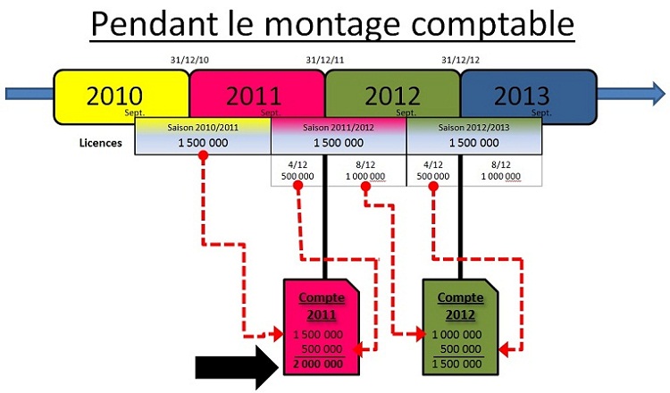 Non, trois fois non. - Cette technique n'est pas "normale". La méthode précédente n'avait aucun inconvénient, aucun illogisme. Même pire, on pourrait dire que l'essentiel des licences étant prise avant décembre, on aurait pu rattacher à l'année de départ (mais ce n'est pas faisable pratiquement). Mais là, il n'y a rien de normal : c'est un choix, mais pas un meilleur choix, sinon, j'attends des arguments solides en faveur de cette méthode. - Cette technique est fausse : 4/12 et 8/12. La prise de licence se fait du 1er sept au 31 juillet. Donc logiquement, il fallait faire 4/11 et 7/11. - Si cela devait être fait depuis longtemps, avez-vous seulement posé la question pourquoi le trésorier depuis 8 ans, ne l'avait pas fait avant ? Pourquoi maintenant, quelle motivation ? Là, il y aurait dû y avoir des explications sérieuses. Et surtout, pour être parfaitement clair, il fallait produire dans les comptes un document avec le résultat avant changement, puis après changement. Pour que tout le monde sache que le vrai résultat c'est -283000 et que le bénéfice de +121000 ne correspond à aucune réalité. Là, cela aurait été clair. Citation :