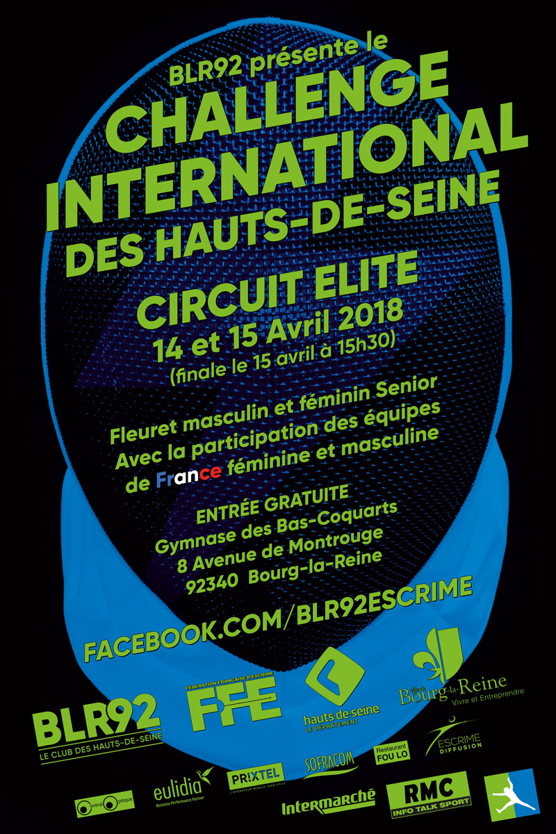 La deuxième édition du Challenge international des Hauts-de-Seine – Circuit Elite Bourg-la-Reine aura lieu les 14 et 15 avril 2018 au gymnase des Bas Coquarts.